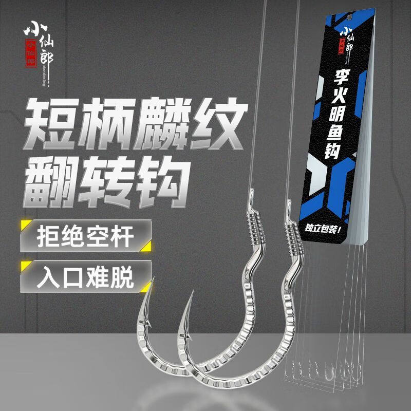淘宝小仙郎反转歪嘴鱼钩正品新型加厚短柄麟纹自动翻转钩绑好子线双钩