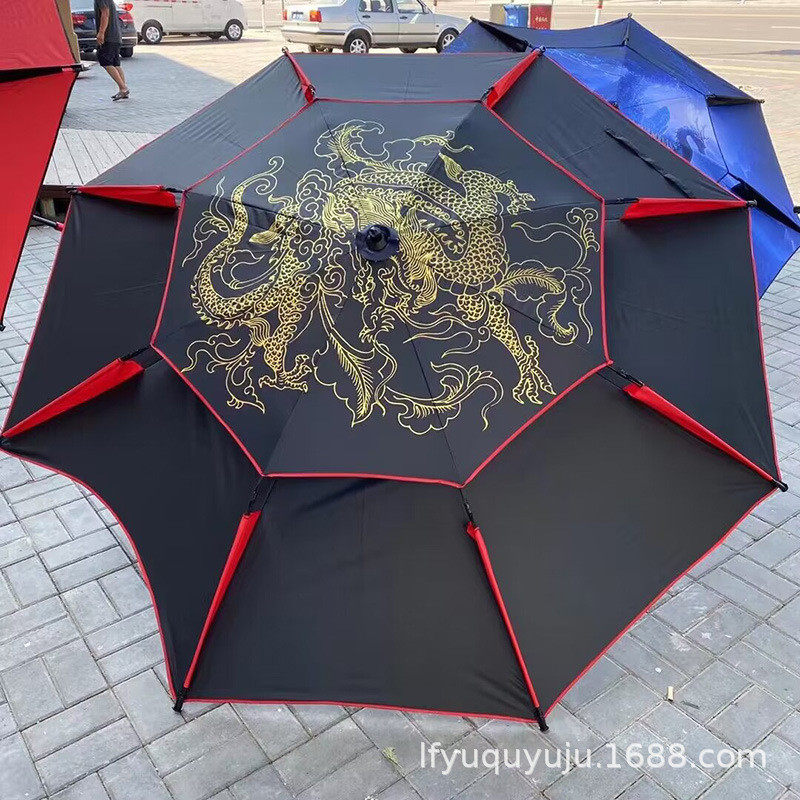 淘宝新款钓鱼伞双层大伞黑胶万向伞防雨防晒户外钓鱼伞2.2米2.4米