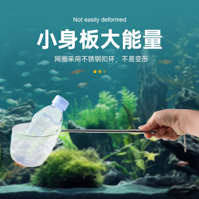 淘宝不锈钢可伸缩立体捞网渔网小型鱼观赏鱼抄网3D鱼捞热带鱼密网厂家