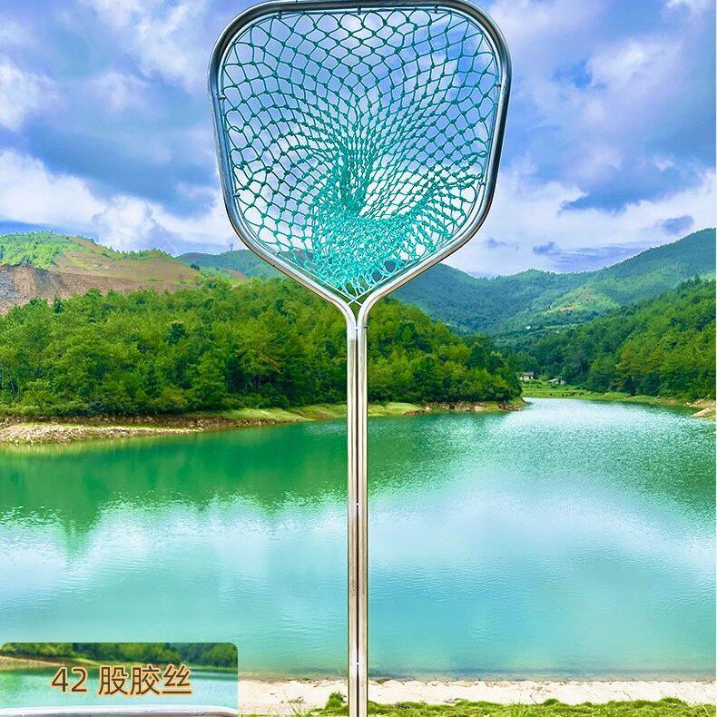 淘宝加厚双管六角不锈钢一体抄网大鱼大物渔网鱼捞手工编织网高承重