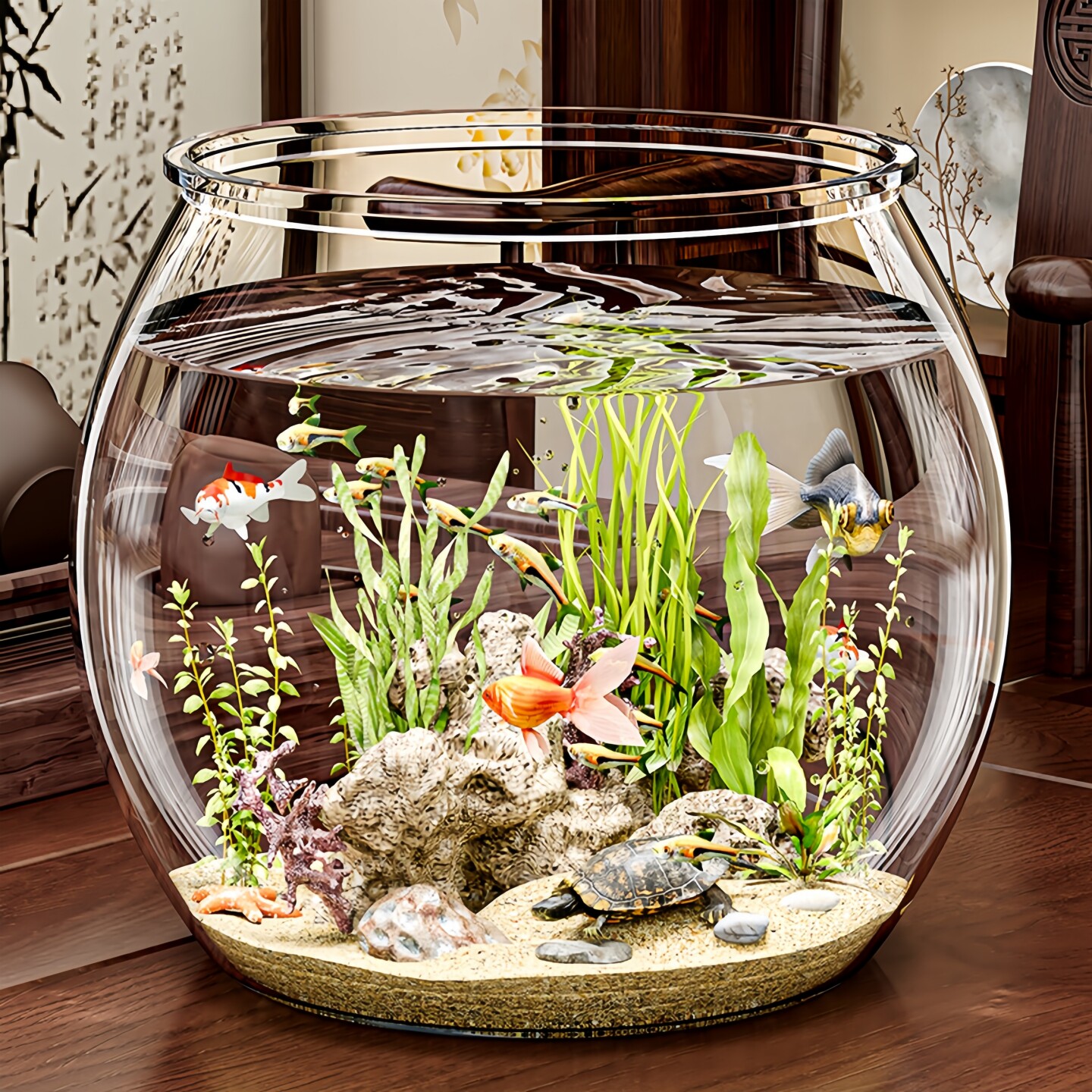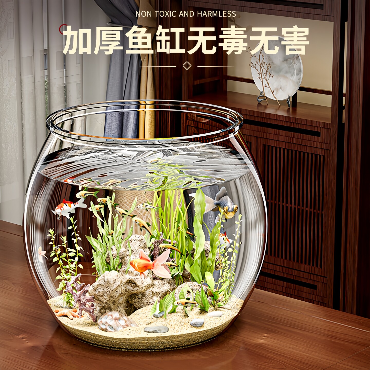 天鱼缸圆形透明玻璃客厅家用小型金鱼斗鱼乌龟缸艺术迷你办公室桌面