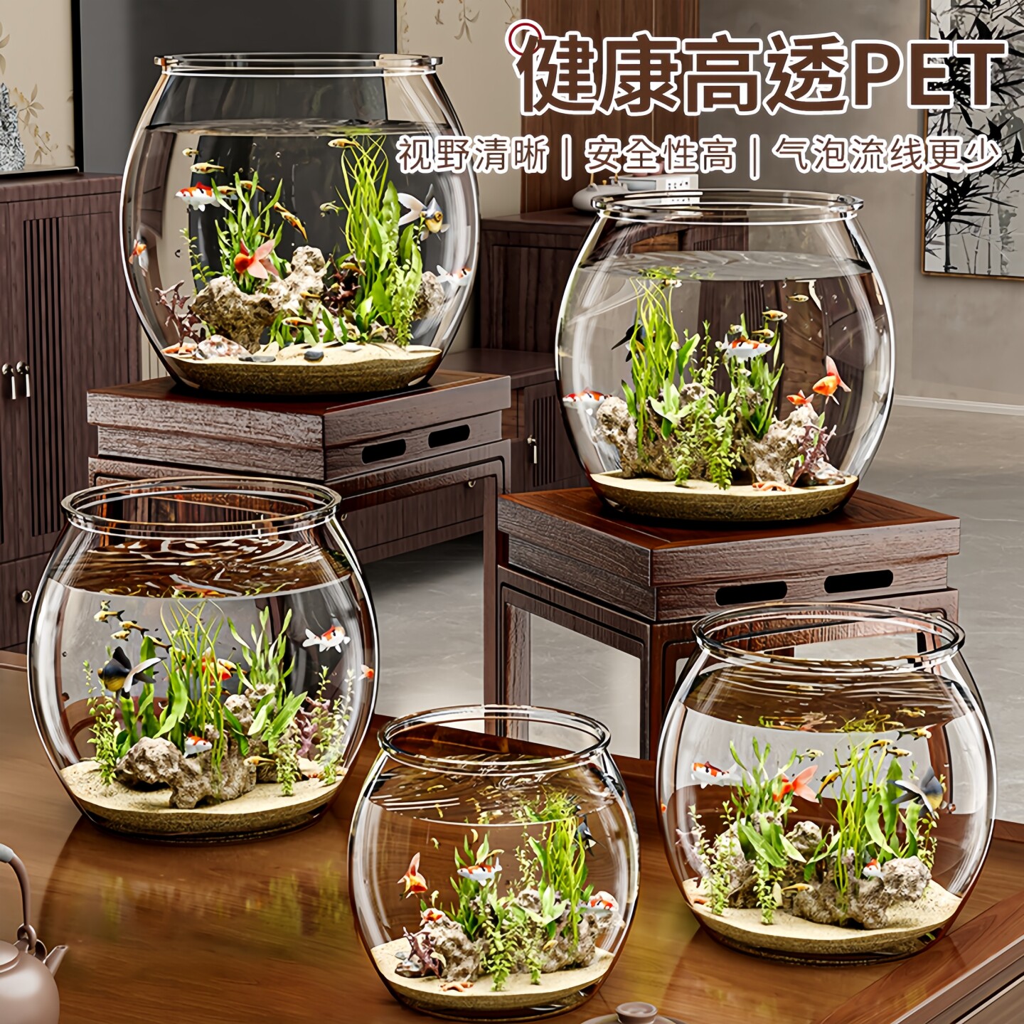 淘宝桌面高透圆形鱼缸加厚塑料一体成型仿玻璃防摔耐摔不坏客厅生态缸