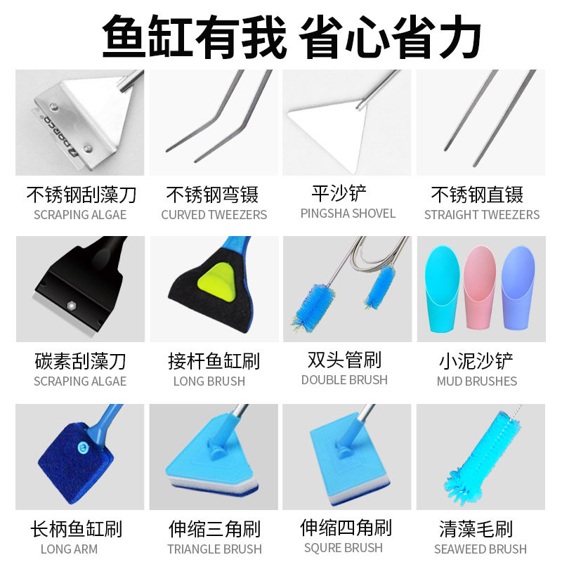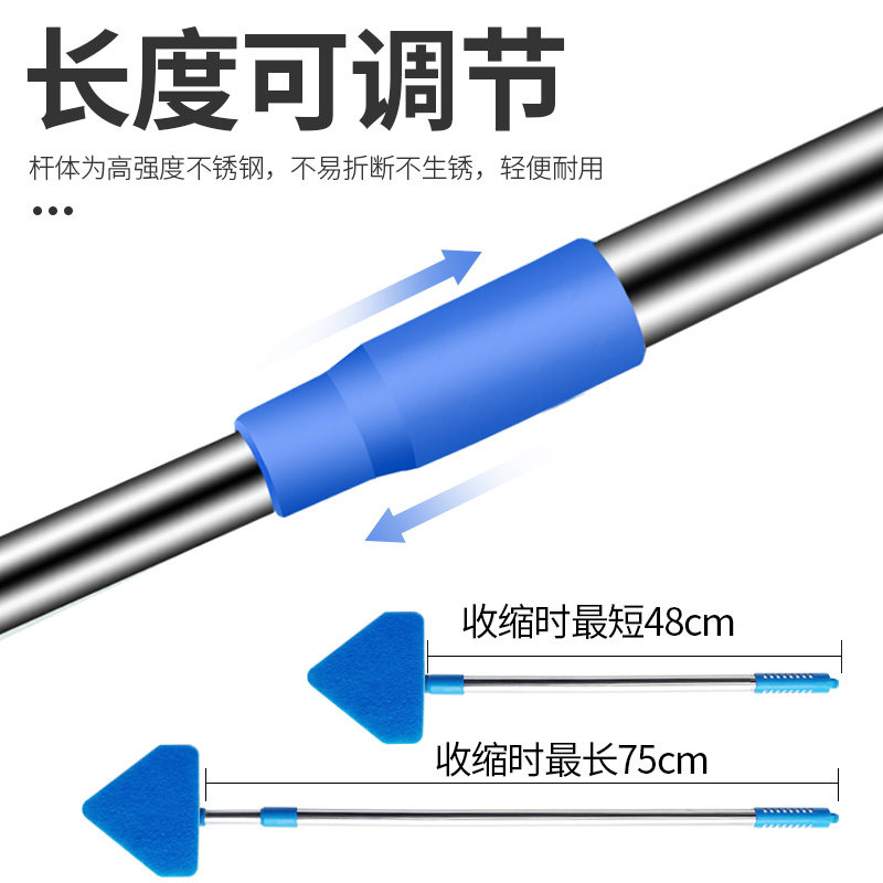 这款鱼缸刷子长柄无死角清洁工具五合一刮藻刀清理神器,专为水族爱好者设计,集五种功能于一体:长柄刷、刮藻刀、海绵擦、缝隙刷和刮水器,轻松应对鱼缸内壁、角落及玻璃接缝处的顽固藻类与污垢。采用人体工学长柄设计,无需伸手入水,避免惊扰鱼儿,清洁更省力。刮藻刀选用安全不锈钢材质,不伤缸体;海绵刷柔软细腻,有效去污不刮花玻璃。五合一结构紧凑,收纳方便,是维护清澈水质、保持鱼缸美观的得力助手,让养鱼更轻松、更省心。
