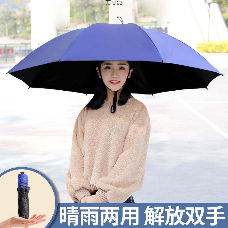 淘伞帽头戴式雨伞便携钓鱼斗笠伞双层防晒折叠头顶雨伞帽户外遮阳伞