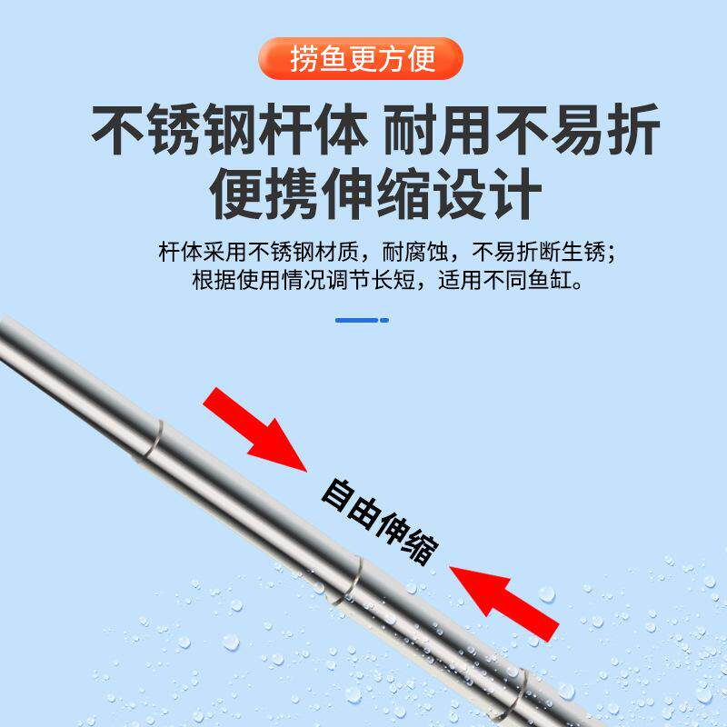 鱼捞渔捞鱼网兜鱼缸不锈钢可伸缩观赏鱼水族清洁手抄捞鱼网大号