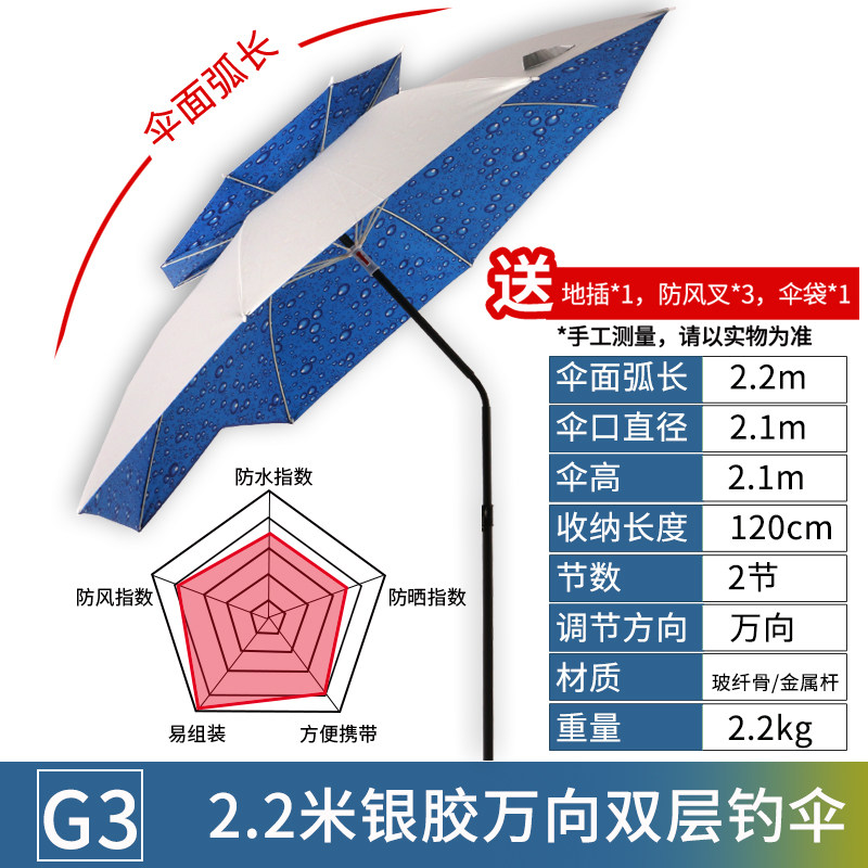 淘宝钓鱼伞2.2米万向双层防雨晒户外钓伞遮阳折叠垂钓伞2.4米渔具用品