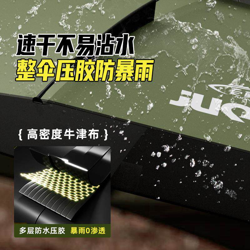 钓鱼伞JQWDYSPO2外5新款是一款专为户外垂钓设计的便携式遮阳防雨工具。采用加厚防紫外线面料,有效阻隔阳光暴晒,具备出色的防晒、防雨性能,适合长时间在湖边、河边或沙滩使用。伞面宽大,遮阳面积充足,可360度调节角度,满足不同天气和光照需求。支架结构稳固,抗风性强,部分款式结合拐杖功能,兼具支撑与便携,特别适合中老年钓友。轻便易携带,收合后体积小,配备专用收纳袋,是钓鱼、露营、沙滩休闲的理想伴侣,兼顾实用性与舒适性,提升户外垂钓体验。