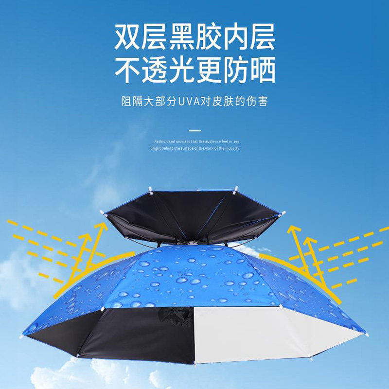 淘头戴式伞帽户外钓鱼遮阳伞双层大号可折叠野钓专用便携式头顶伞