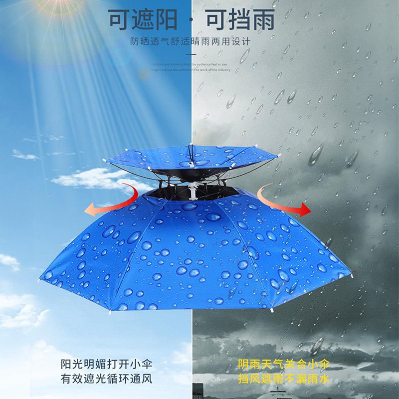 天伞帽头戴式雨伞帽钓鱼伞头戴太阳伞户外采茶防晒斗笠伞头顶伞折叠