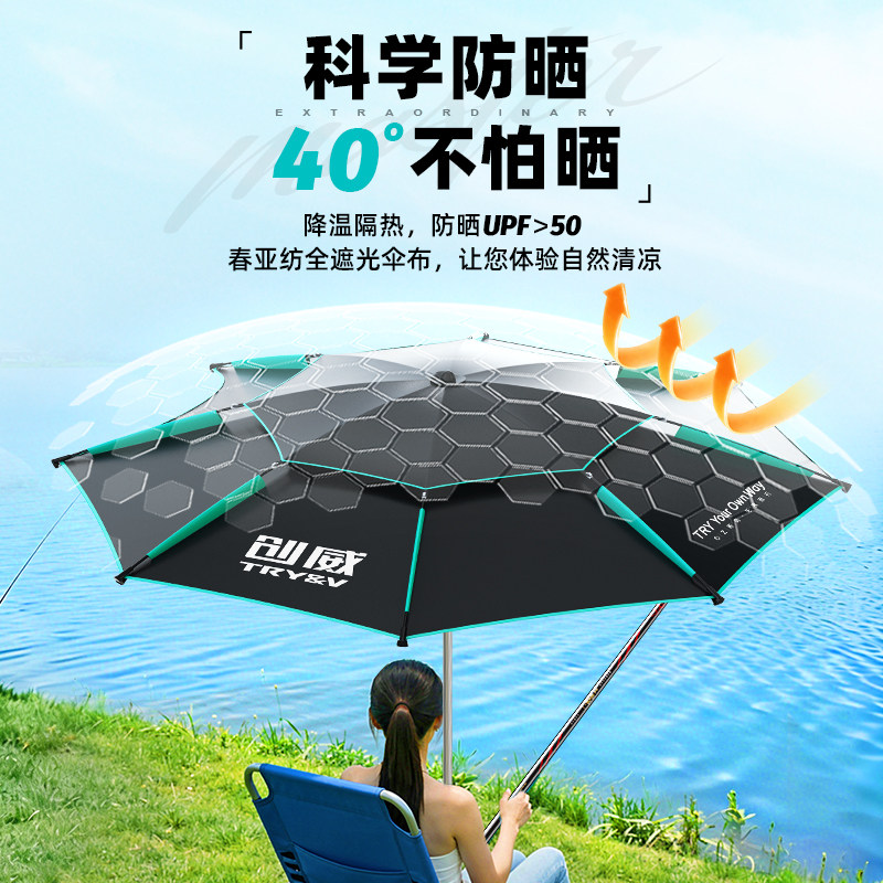 创威2026新款大钓伞,专为户外垂钓爱好者设计,集遮阳、防雨、便携于一体。采用加厚防晒涂层伞面,有效阻隔紫外线,防晒指数高达UPF50+,晴雨两用更安心。伞骨精选高强度玻璃纤维材质,抗风稳固,经久耐用。独特拐杖式设计,可插入地面或固定于钓箱,解放双手,提升垂钓体验。伞面直径达2米,覆盖面积大,有效遮挡阳光与雨水。收合轻便,配备便携收纳袋,出行携带无负担。无论是湖边、河边还是海钓,创威钓鱼伞都是您户外垂钓的理想伴侣,兼顾实用性与舒适性,让垂钓更从容。