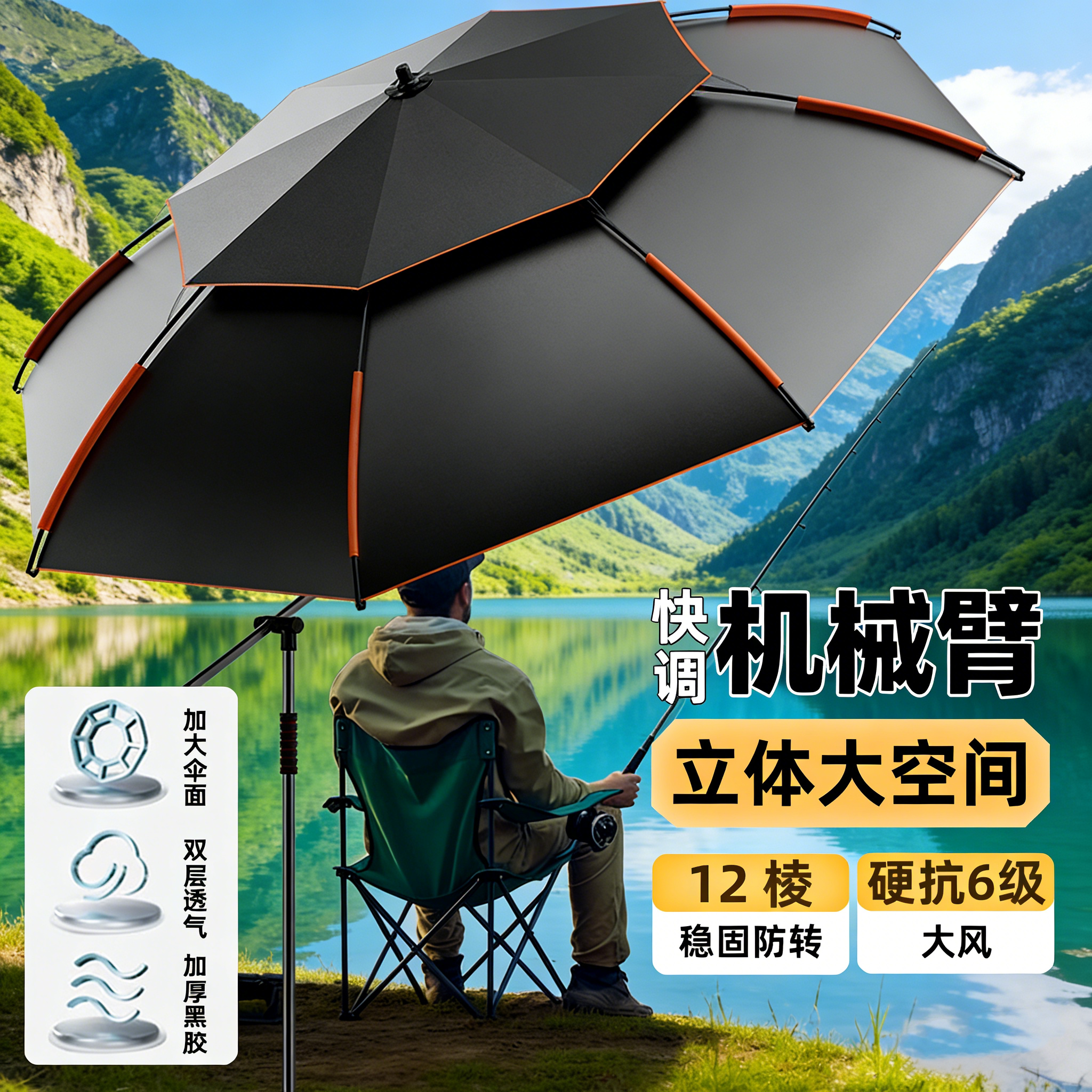 淘宝钓鱼伞拐杖万向加厚黑胶防晒防雨户外露营遮阳伞垂钓伞摆摊野外伞