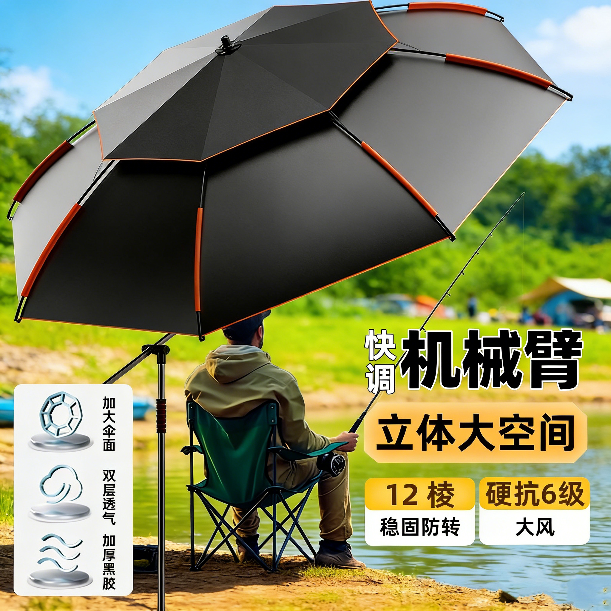 淘2026新款钓鱼伞大钓伞户外露营遮阳伞垂钓机械拐杖加厚防晒防暴雨