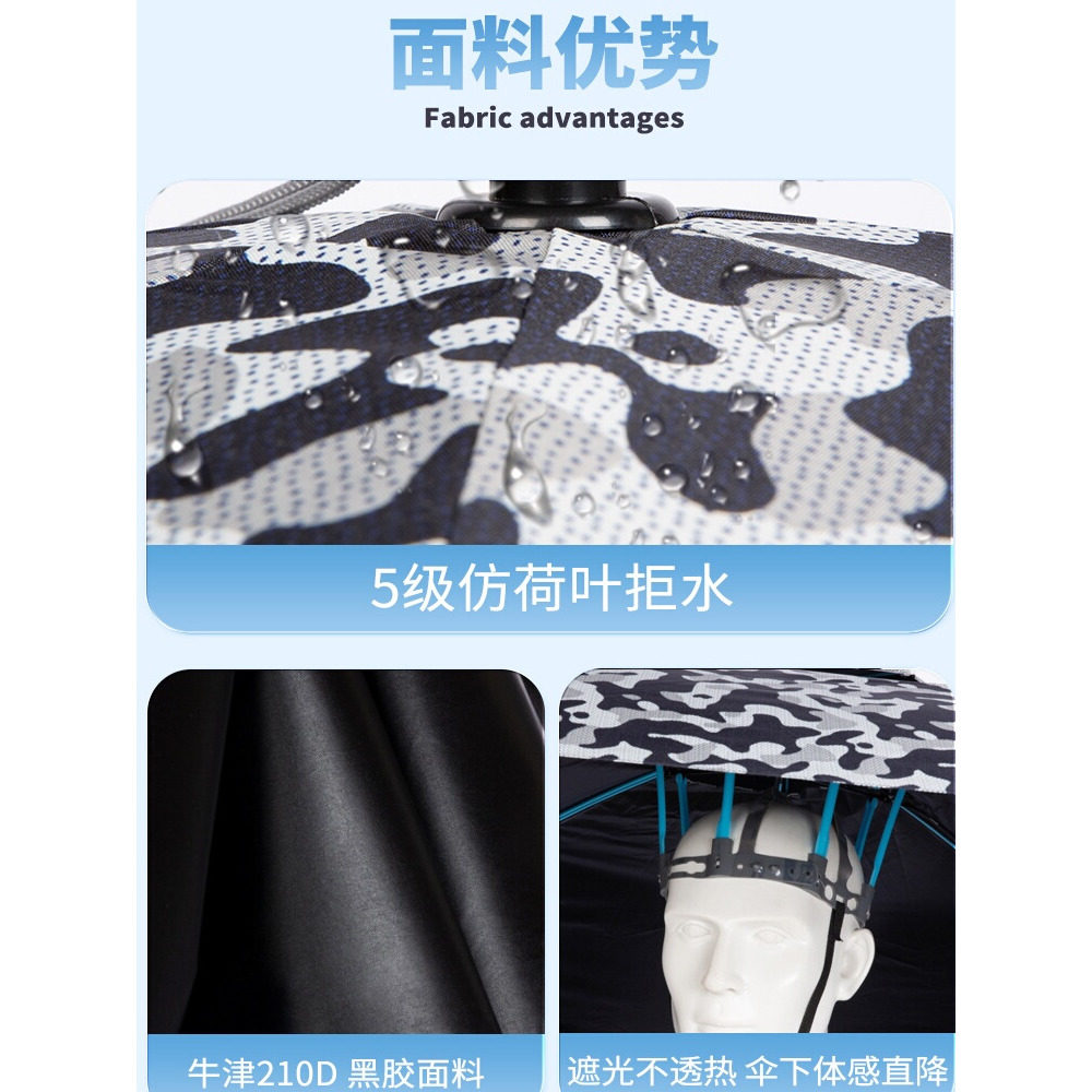 天渔之源头戴式雨伞雨伞帽钓鱼防晒帽头顶雨伞斗笠防雨防晒钓鱼头伞