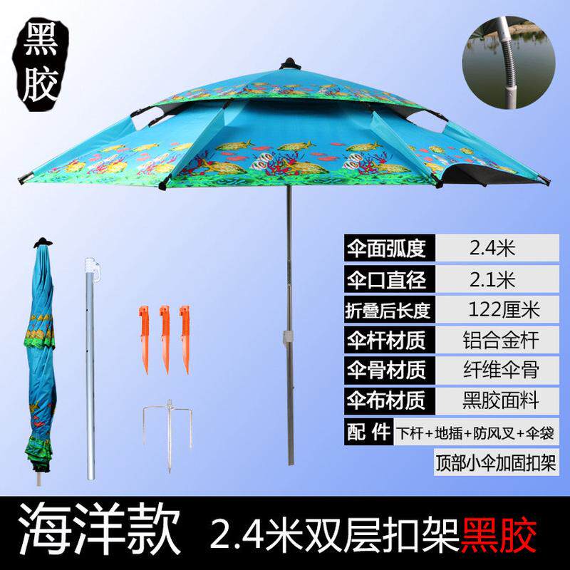 淘钓鱼伞加厚大钓伞2.4米双层加固万向防晒透气防雨抗风折叠遮萍润