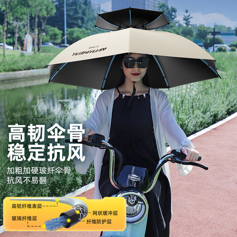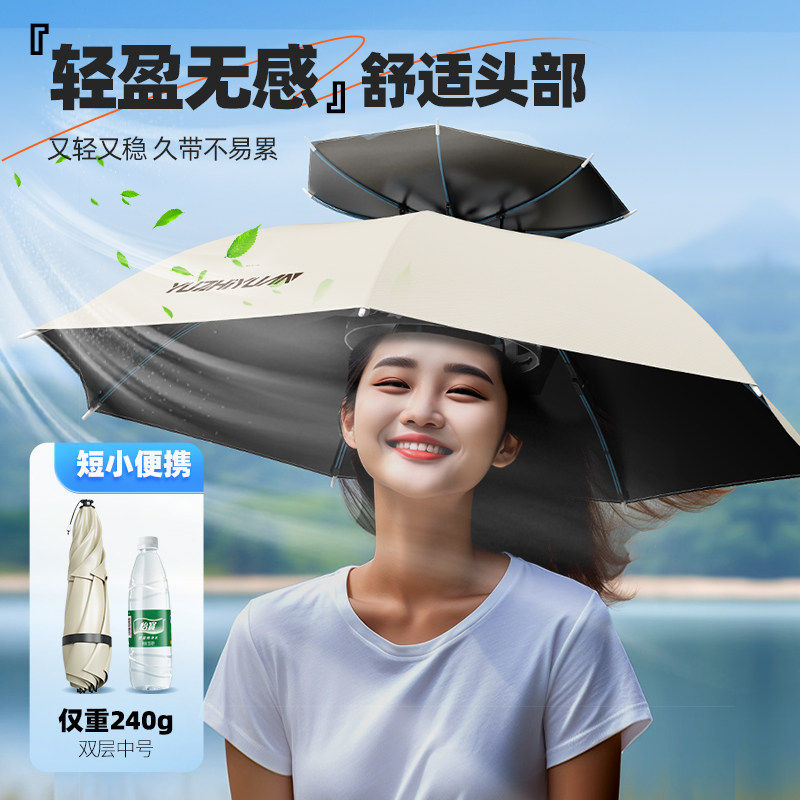 淘伞帽头戴式雨伞便携钓鱼斗笠伞双层防晒折叠头顶雨伞帽户外遮阳伞