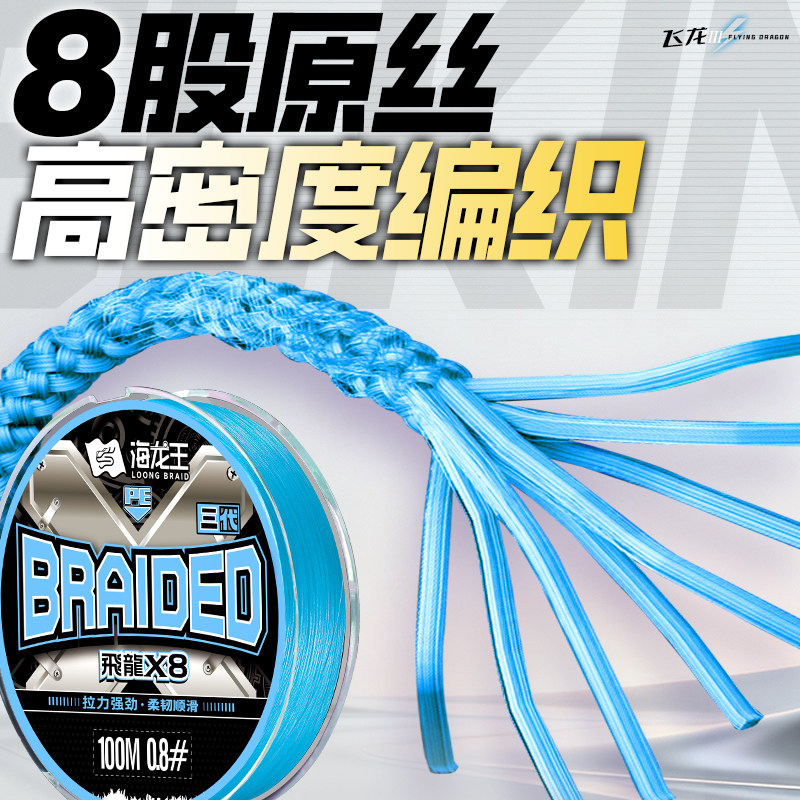 天猫海龙王8编pe线路亚专用主线强拉力远投顺滑耐磨钓鱼线飞龙3代湖蓝