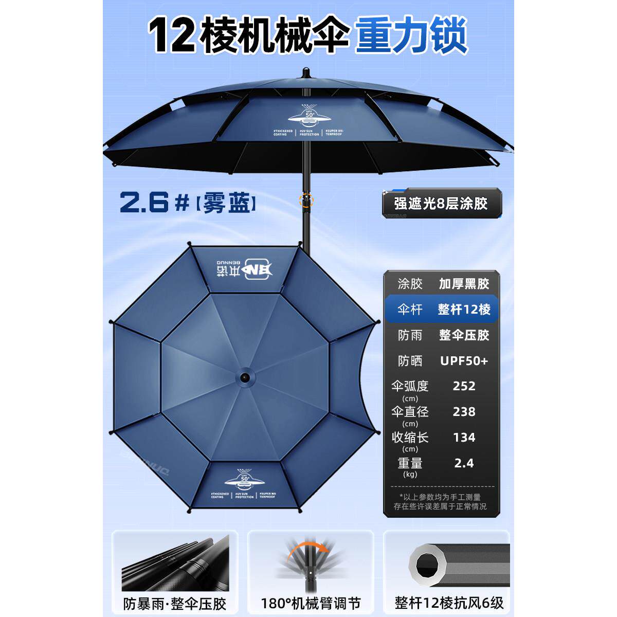 淘钓鱼伞AN-阳伞1801.8米塑牛短津伞太伞遮JVI阳垂钓钓蓝色