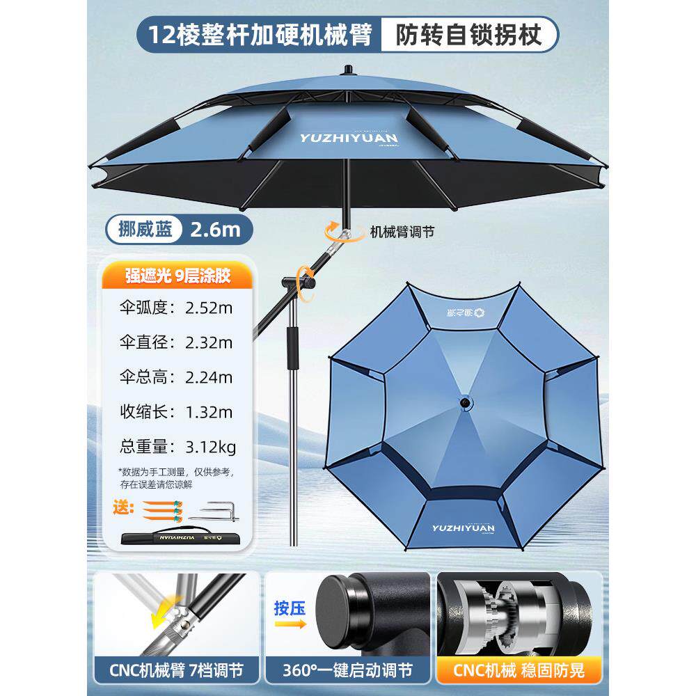 2026新款钓鱼伞大钓伞户外露营遮阳伞垂钓机械拐杖加厚防晒防暴雨