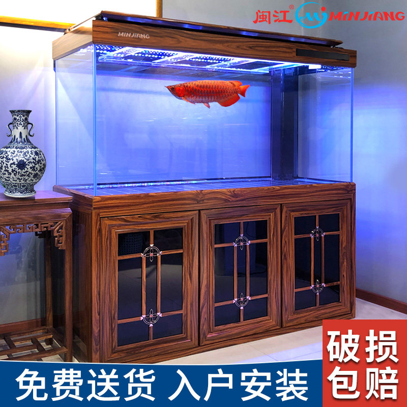 淘宝闽江大型水族箱中式超白玻璃底滤客厅金鱼缸办公室风水招财龙鱼缸