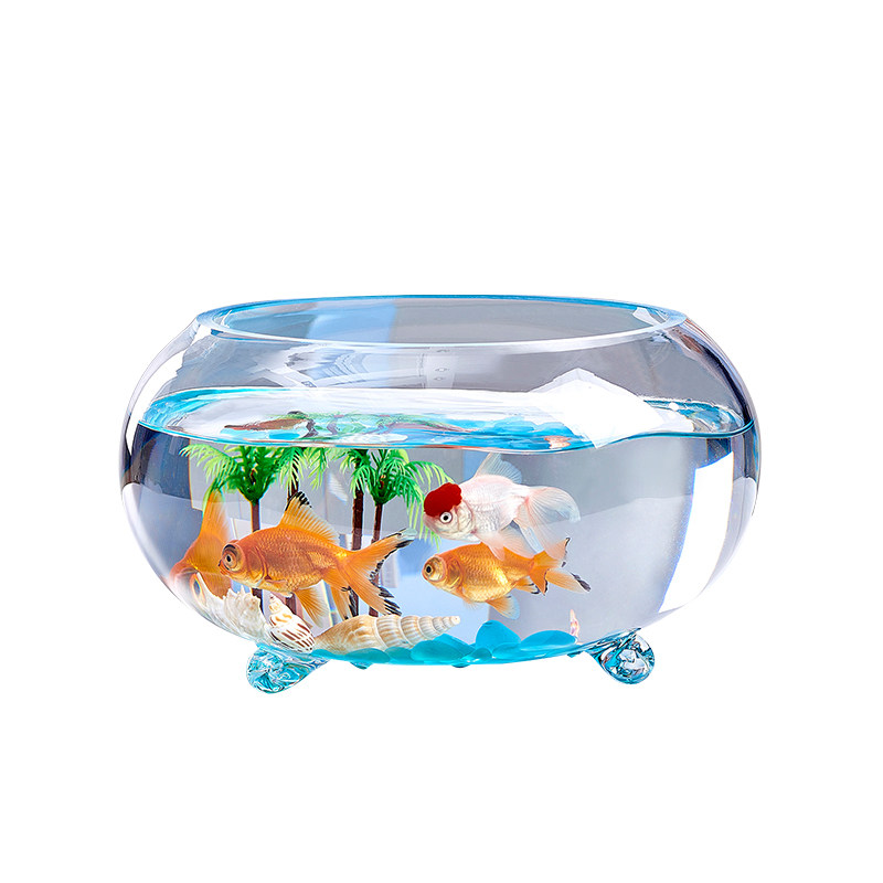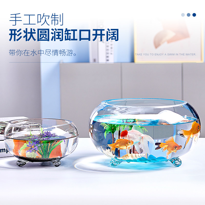 淘宝办公室小型金鱼缸加厚透明玻璃乌龟缸客厅家用迷你带脚小型金鱼缸