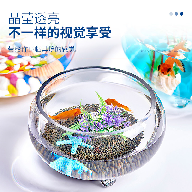 淘金鱼缸圆形透明玻璃大号乌龟缸加厚办公室鱼缸客厅招财创意生态缸