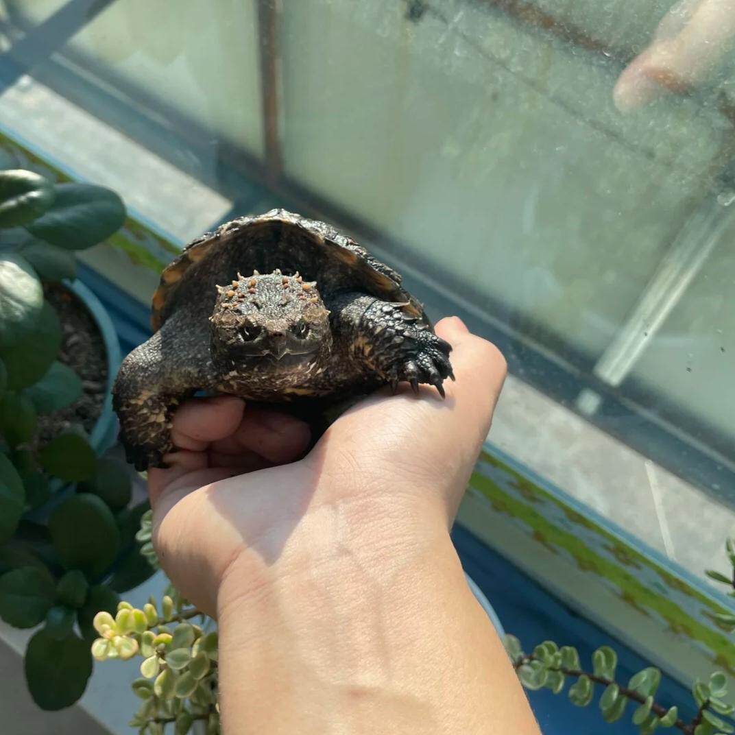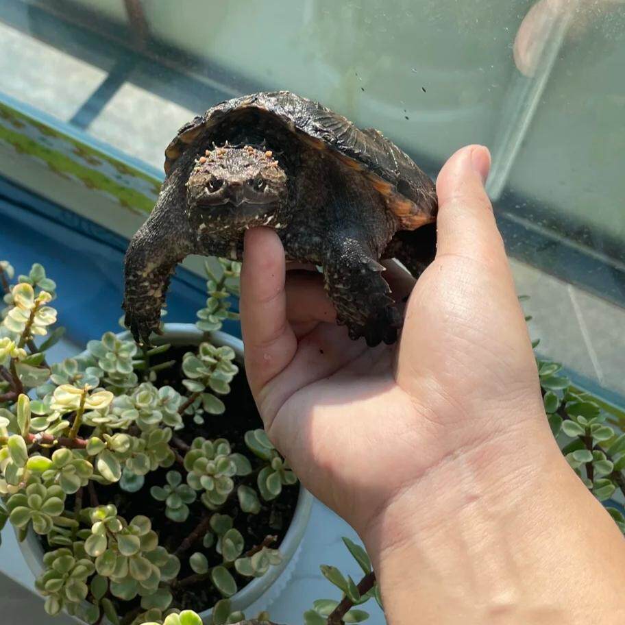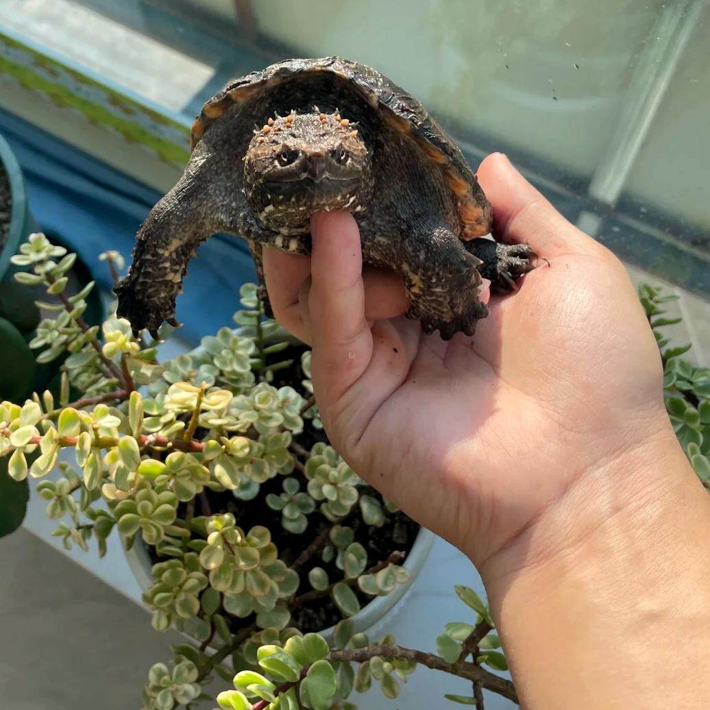 这是一只活体原种北美小鳄龟苗,又称“暴刺”或“纯佛”,是观赏性极强的深水宠物龟。其背甲高耸、棱角分明,头部宽大,吻部突出,四肢具强刺,野性十足,极具视觉冲击力。作为纯正的北美拟鳄龟(Chelydra serpentina),它适应力强、生长迅速,适合有一定饲养经验的爱好者。幼体即可深水饲养,需配备过滤系统和晒背区。性格凶猛,互动性高,但需注意安全。因其独特外形和霸气气质,深受龟类收藏者喜爱。购买时请确认来源合法,确保为真种活体,避免杂交个体影响品相与价值。