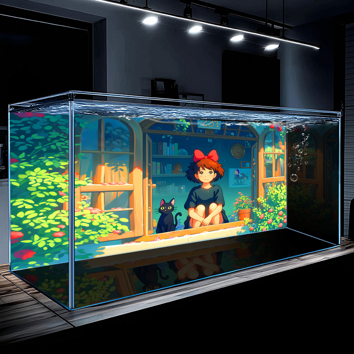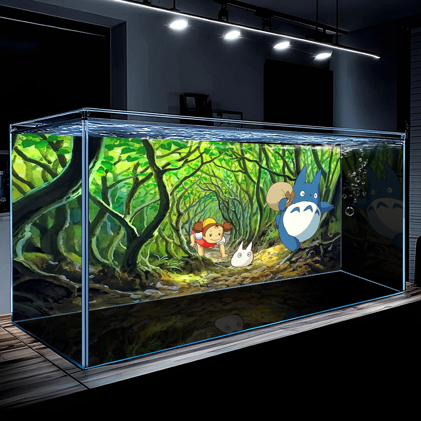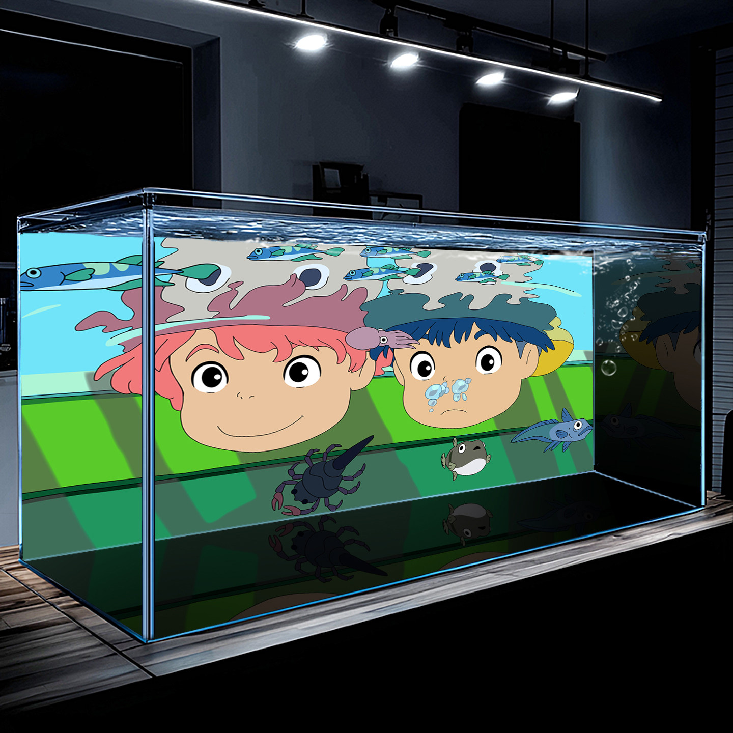 淘宝鱼缸背景画高清定制超白缸动漫贴纸波妞小鱼缸装饰造景图自粘无痕