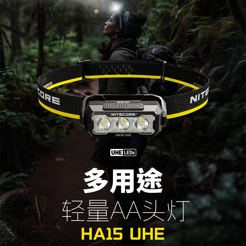 天猫NITECORE奈特科尔HA15 UHE户外充电头灯AA电池钓鱼夜跑强光登山灯