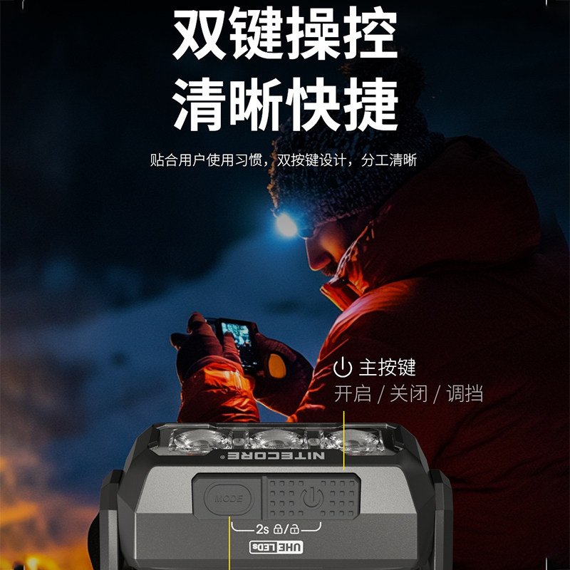 NITECORE奈特科尔HA15UHE是一款专为户外爱好者设计的多功能充电头灯,采用AA电池供电,兼顾轻便与续航。搭载高亮LED,最大输出可达550流明,提供远距照明与广角泛光,满足夜跑、钓鱼、登山等场景需求。具备IP67防水等级,无惧雨雪恶劣环境。头灯支持USB-C直充,内置智能电量显示,操作便捷。轻量化设计配合可调节头带,佩戴舒适稳固。独特侧置灯头结构减少阴影干扰,提升视野清晰度。无论是夜间徒步、露营作业还是紧急救援,HA15UHE都以可靠性能与出色照明表现,成为户外活动的理想照明伴侣。