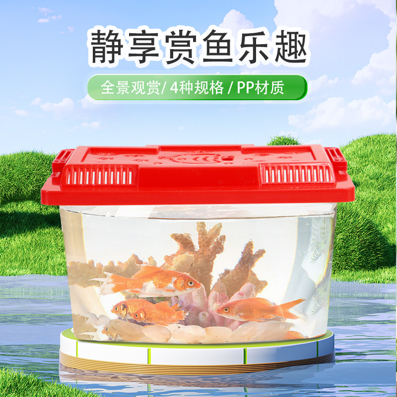 淘宝儿童手提塑料鱼缸乌龟缸透明防摔大中小号摆摊金鱼宠物饲养运输盒