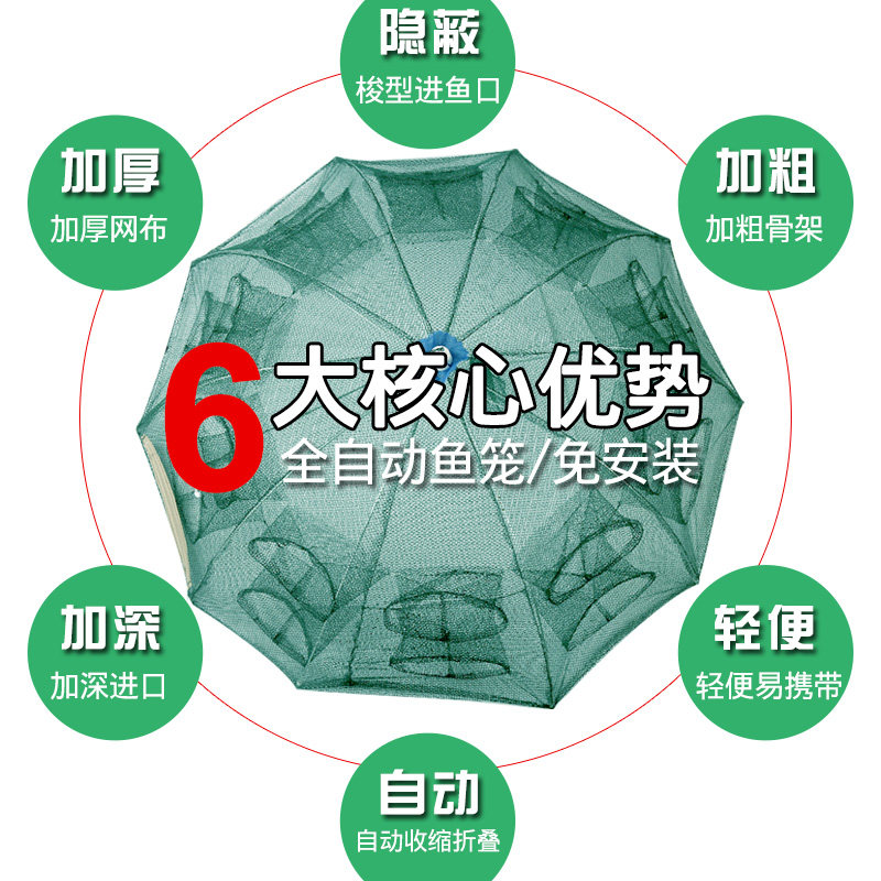 虾笼捕鱼笼加粗伞网自动渔网捕鱼网鳝鱼笼捉虾网诱鱼网带夜光折叠