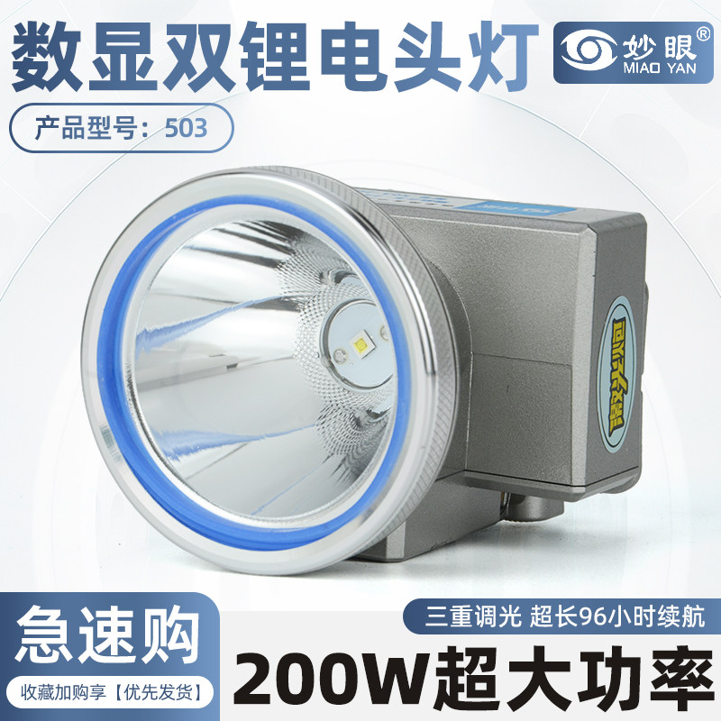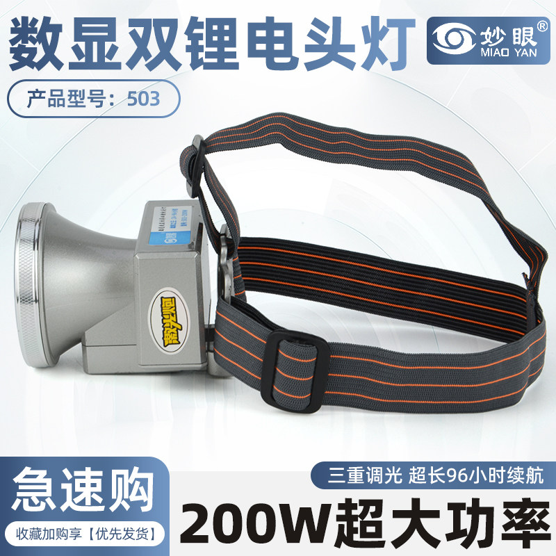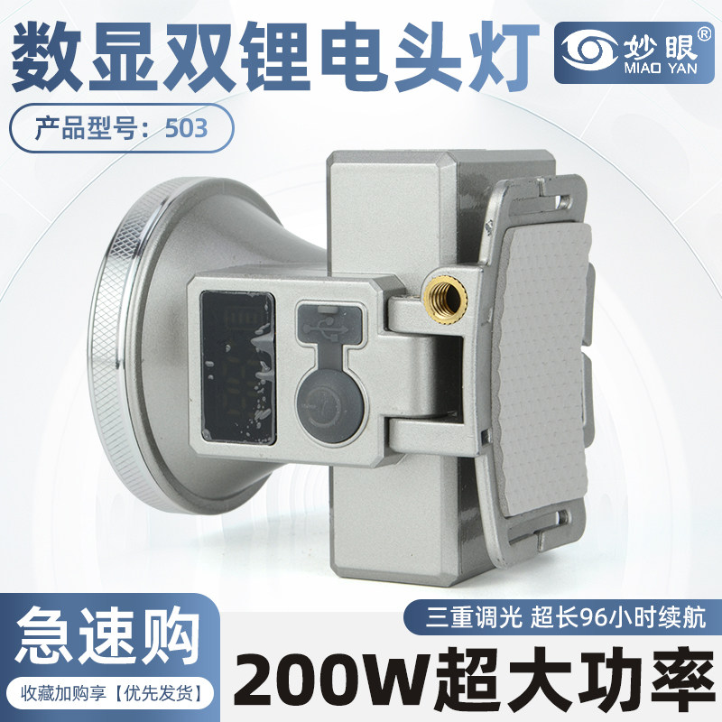 淘宝妙眼503/505数显双锂电强光头灯超长续航钓鱼专用头戴式户外照明