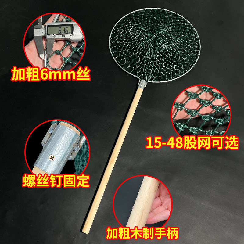 淘宝实心木把加粗手工鱼网粗线结实抄大鱼超硬网头市场卖鱼捞草鱼青鱼