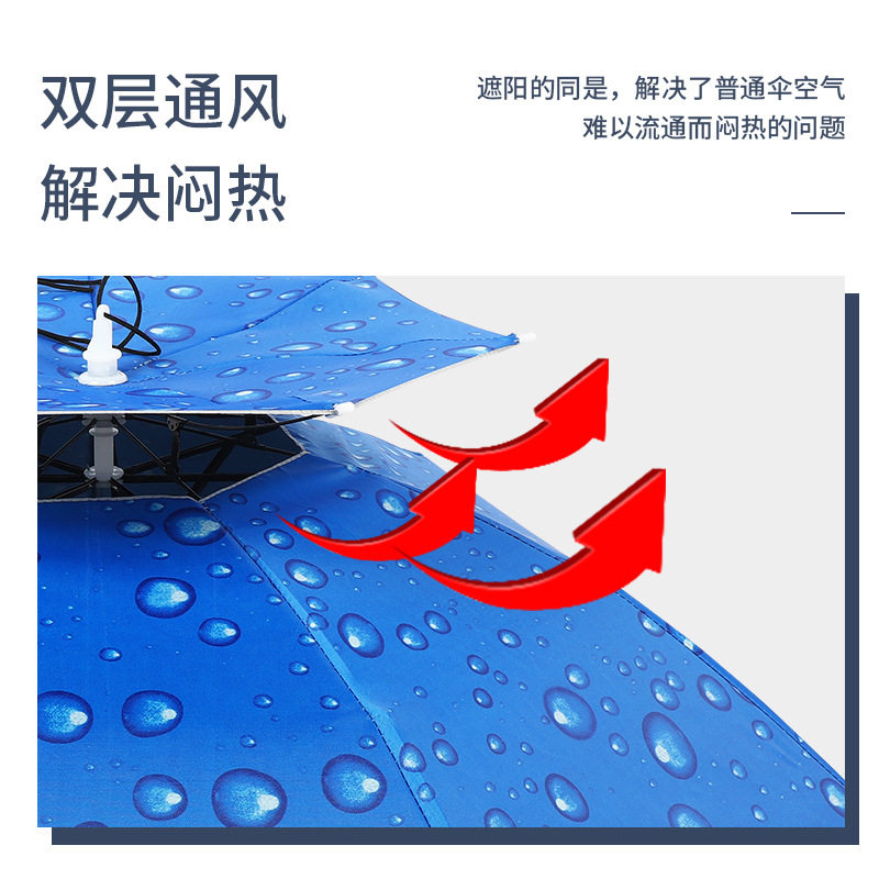 天双层防风防雨钓鱼伞帽头戴式雨伞防晒折叠头顶雨伞帽户外遮阳垂钓