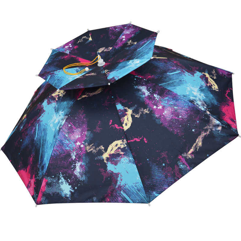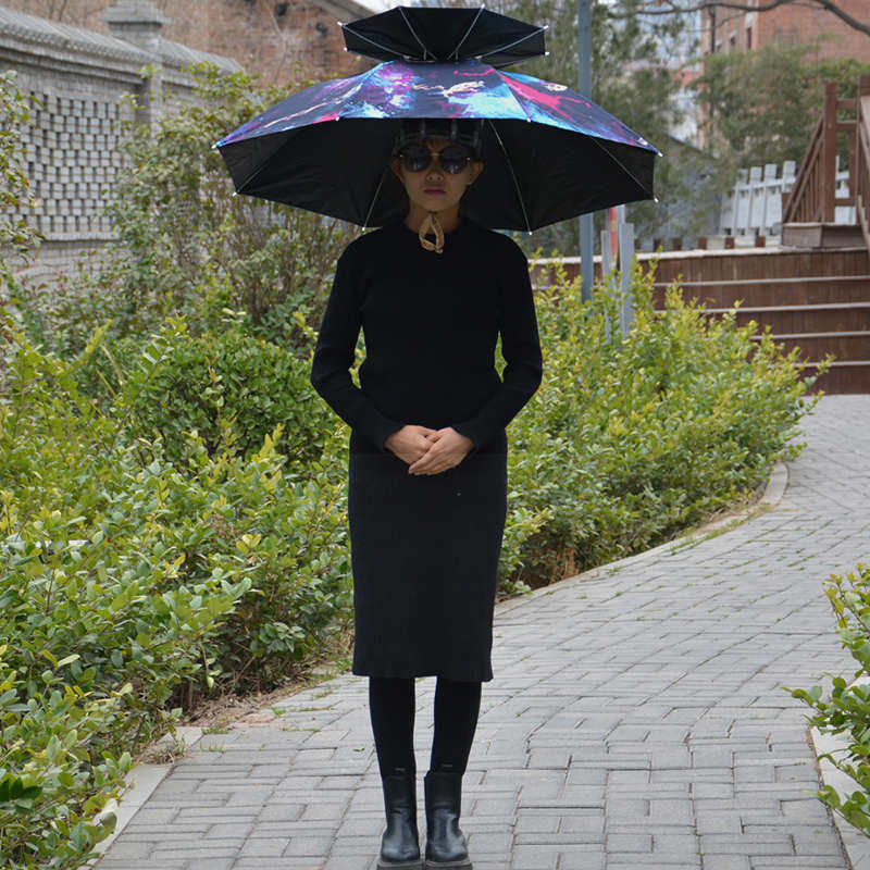 淘头戴伞帽超大号晴雨两用三折叠伞钓鱼摄影采N茶斗笠伞帽子防晒雨