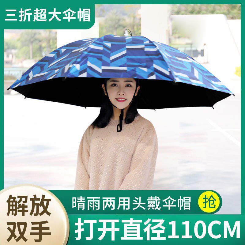 淘宝头戴伞帽超大号晴雨两用三折叠伞钓鱼摄影采N茶斗笠伞帽子防晒雨