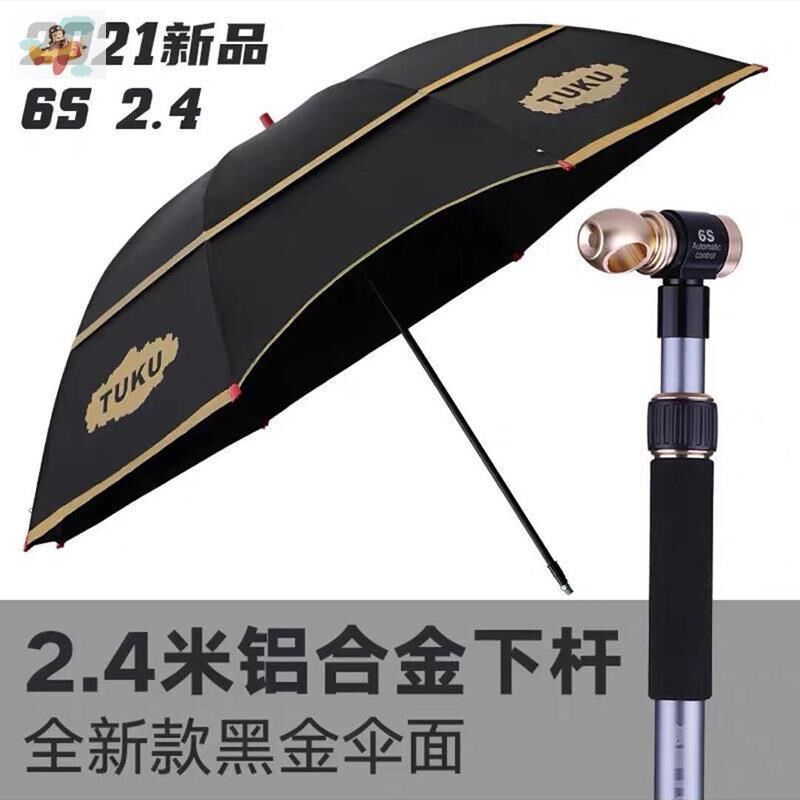 淘2024新款钓鱼伞拐杖防晒防雨大钓伞抗风黑胶加W厚垂钓遮阳伞