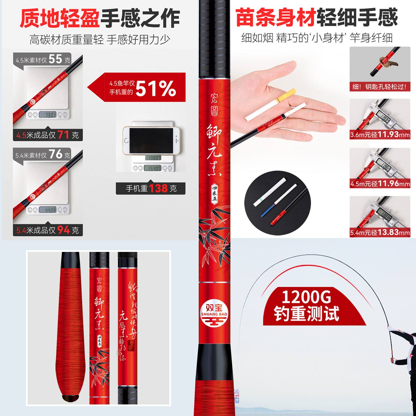 天猫双宝鲫元素鲫鱼竿专用鱼竿极轻小综合超轻超细超硬特轻量杆钓鱼竿