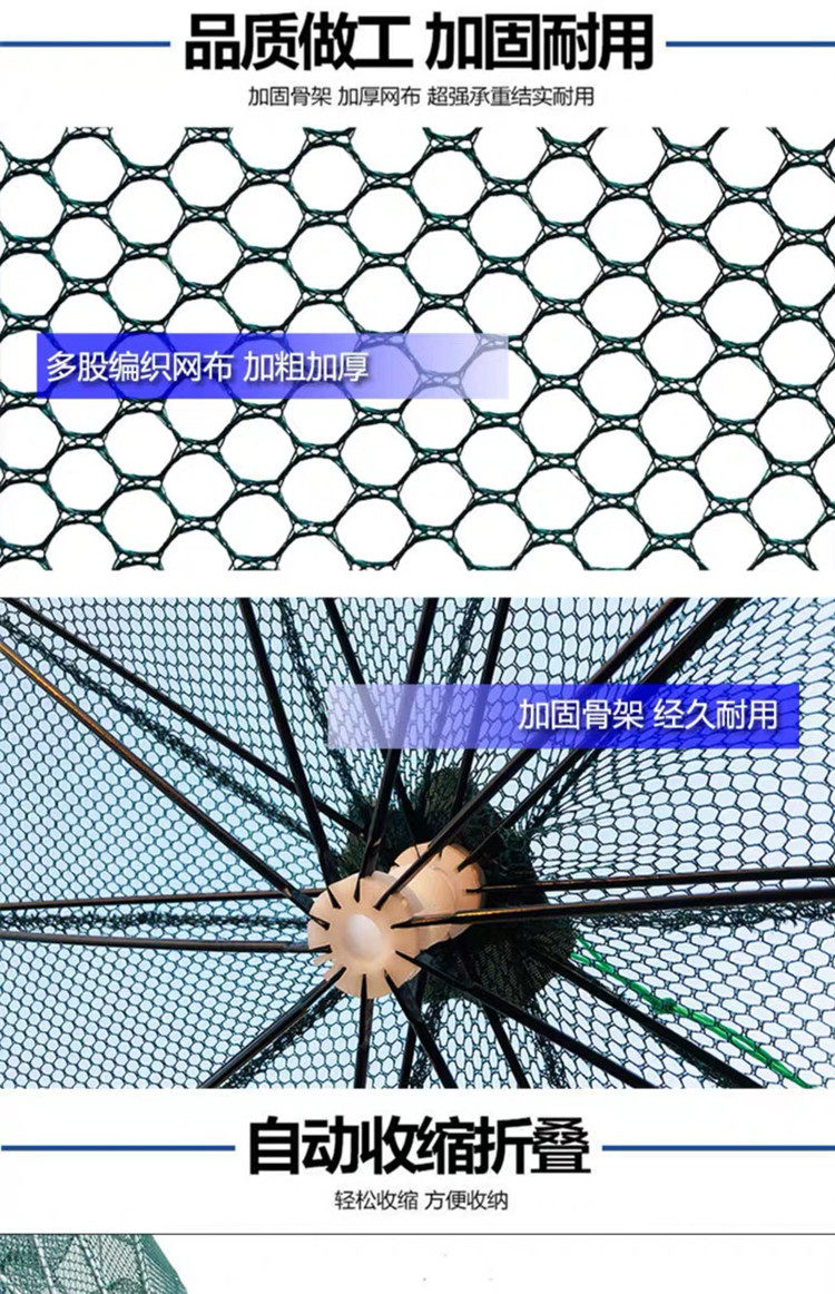 天虾笼捕鱼笼加粗伞网自动渔网捕鱼网鳝鱼笼捉虾网诱鱼网带夜光折叠