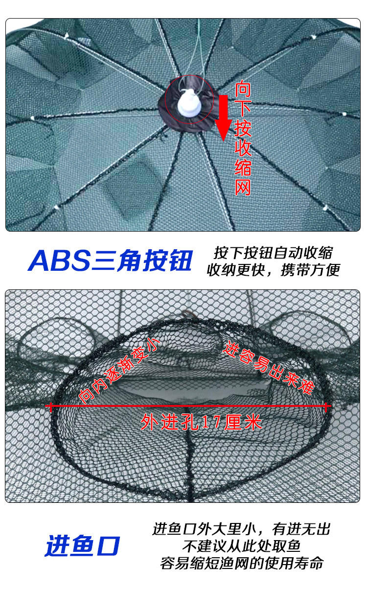 淘折叠河网八字虎口网自动网鱼网拖网鱼笼鱼神器渔网大全网笼网毫
