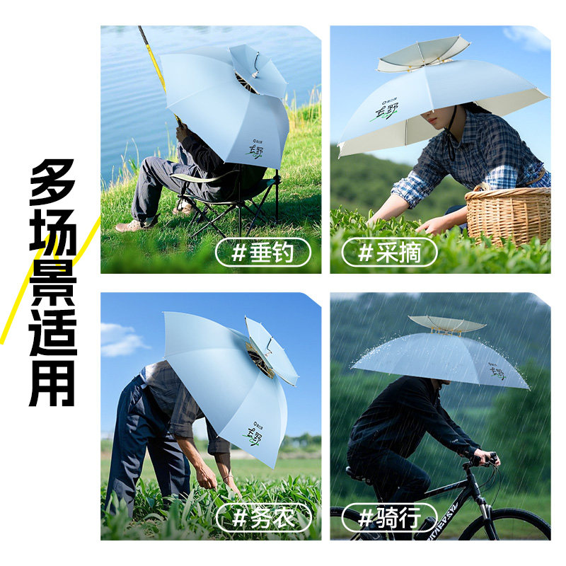 淘雨伞帽双层头戴式头顶带式帽伞遮阳防晒折叠户外大号钓鱼雨伞帽