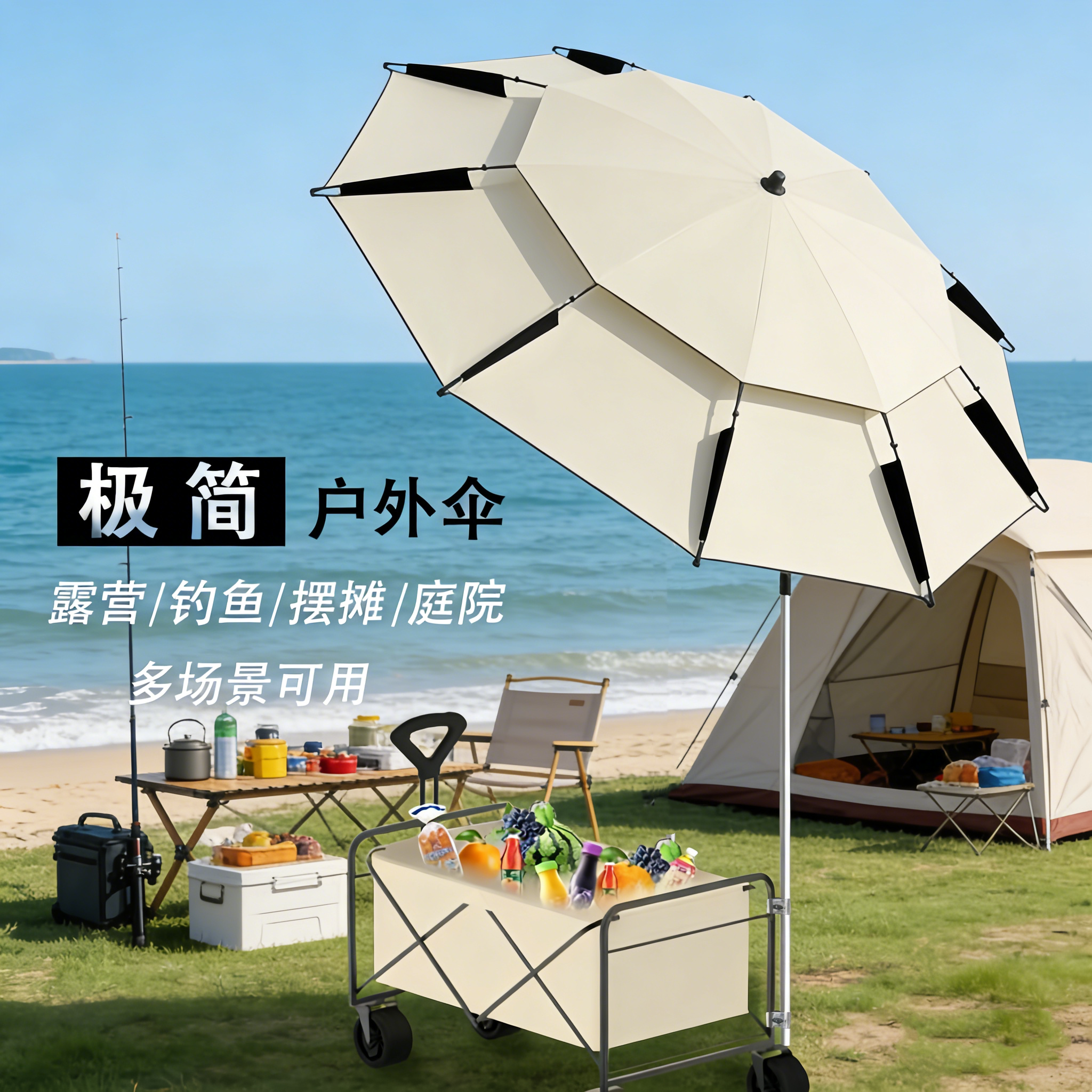 淘方形露营车遮阳伞户外露营伞免搭天幕伞拐杖钓鱼伞钓伞大伞沙滩伞