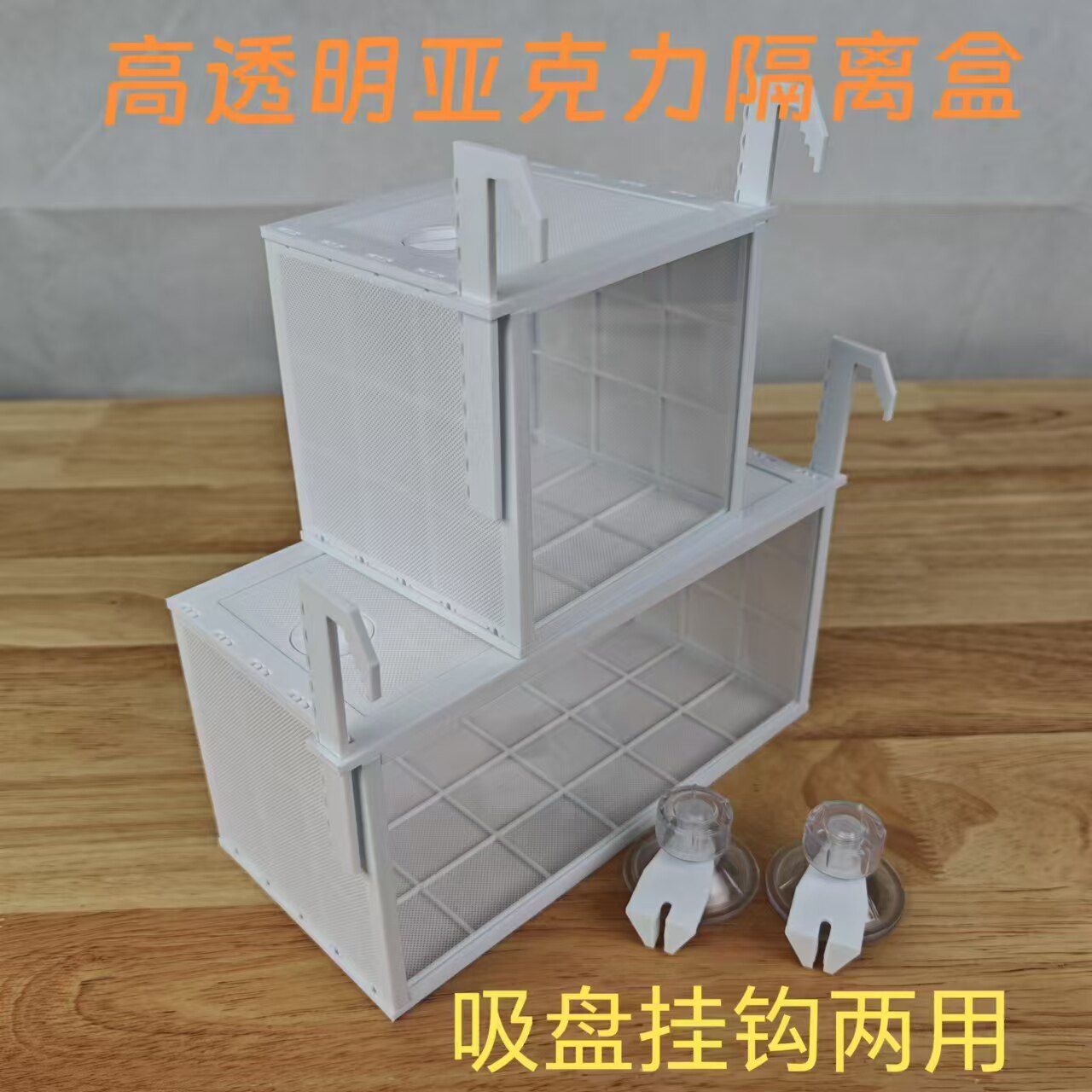 淘宝鱼缸隔离盒鱼苗鱼卵孵化繁殖隔离盒吸盘挂钩高透明亚克力海水
