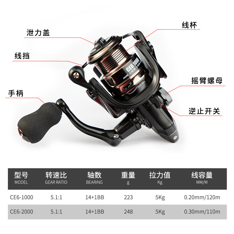 天猫猎魔人CE6浅线杯纺车轮路亚金属斜口远投海钓抛竿鱼线轮路亚鱼轮