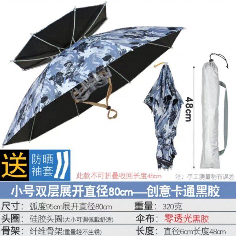 淘宝雨帽遮雨两用头戴垂钓伞钓鱼伞帽双层黑胶伞大号防晒遮阳折叠超轻