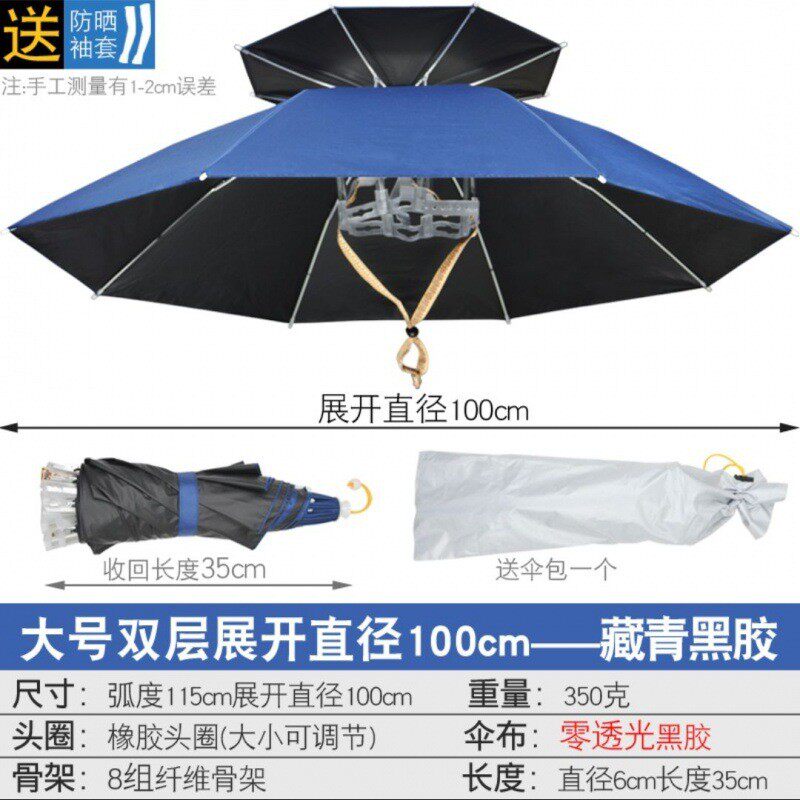 天渔之源钓鱼伞帽头戴式太阳伞帽斗笠雨伞伞双层钓鱼专用头伞遮阳帽