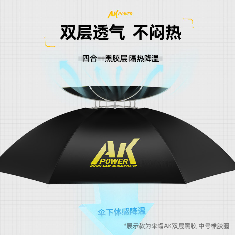 2025新款钓鱼伞帽双层大号户外遮阳防晒头戴式雨伞斗笠折叠头顶伞