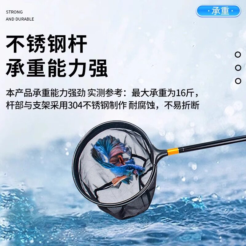 鱼捞网兜超密网小号大号不锈钢伸缩杆手工3d方形圆形鱼缸斗鱼鱼捞