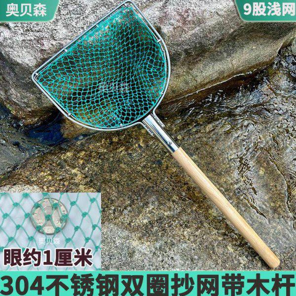 淘宝浅网双圈304不锈钢捞鱼网市场卖鱼捞海鲜手抄网赶海三角渔捞网兜