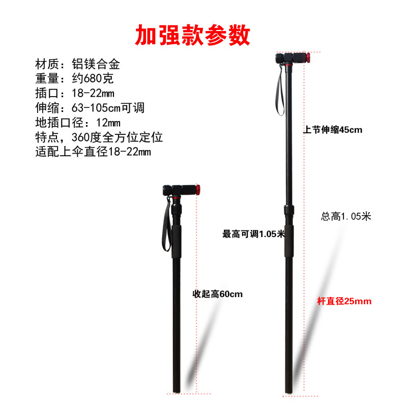 天钓哈哈新型拐杖钓鱼伞下杆不锈钢多向可调节地插支架通用钓伞配件